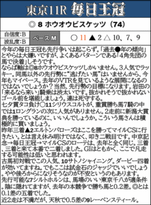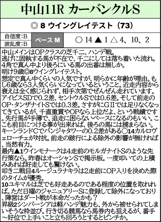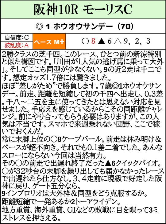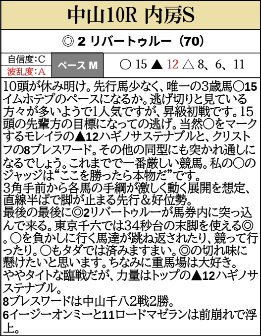 日曜日は計10鞍の予想で3勝、2着1回、3着3回。
