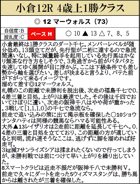 仰る通り、かもめ島特別よりも先行馬へのマークが厳しい展開。