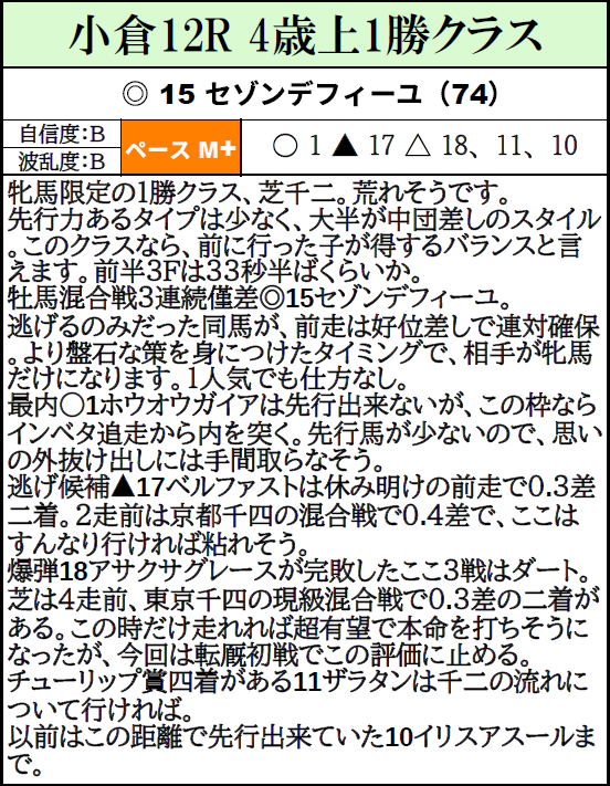 「ペース判断に疎い騎手が多いので、速い流れになって差し決着」