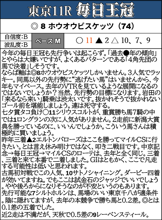 書いてあった通り、函館記念のホウオウビスケッツの再現!