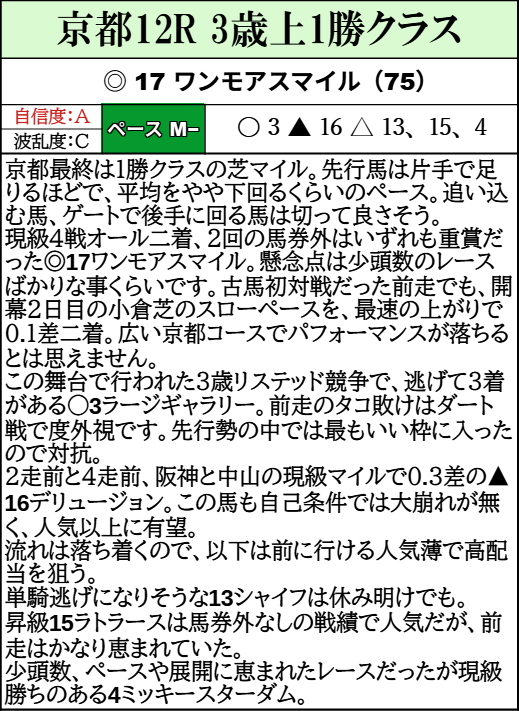 本命◎17ワンモアスマイルが見解通りの好位差しでV!